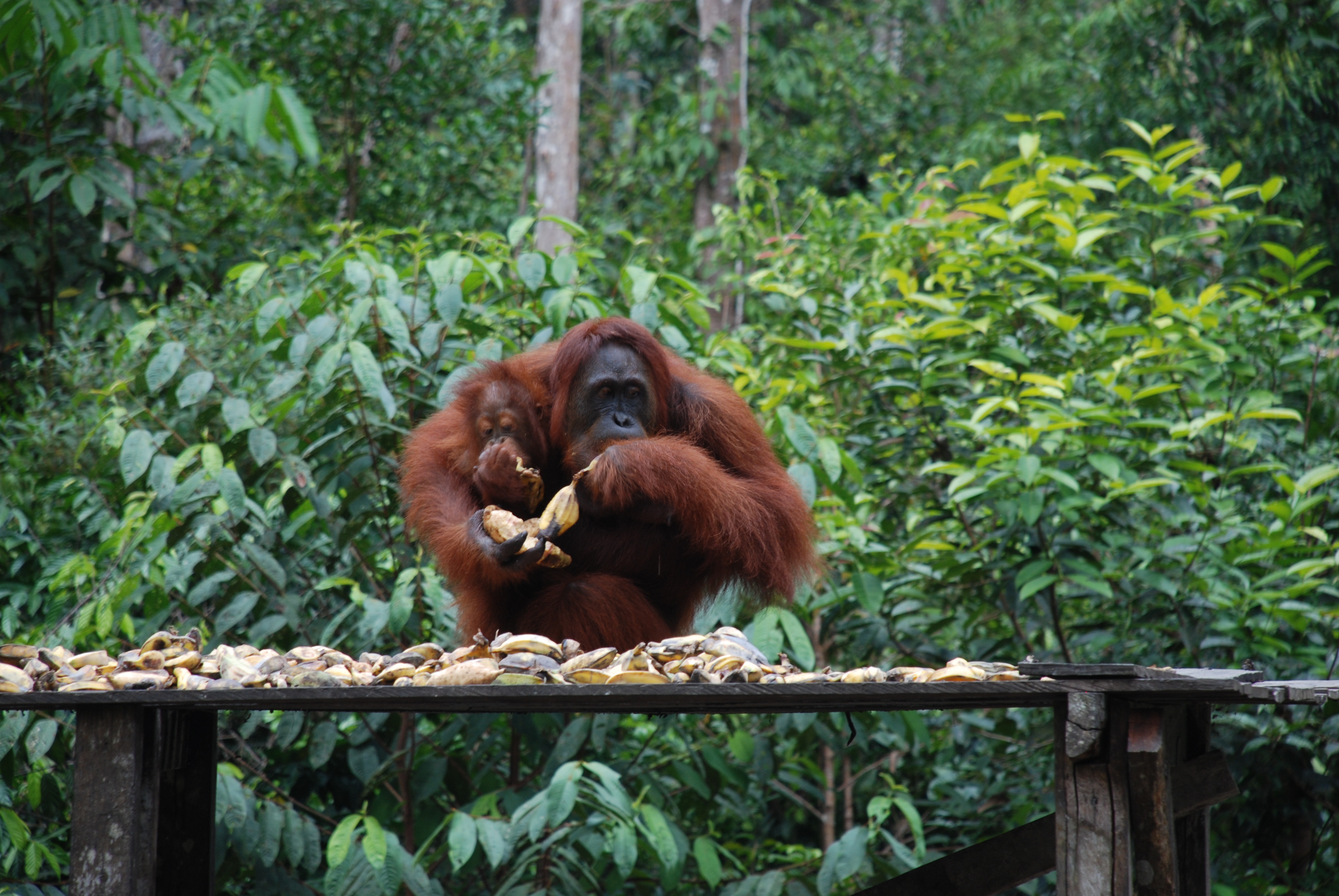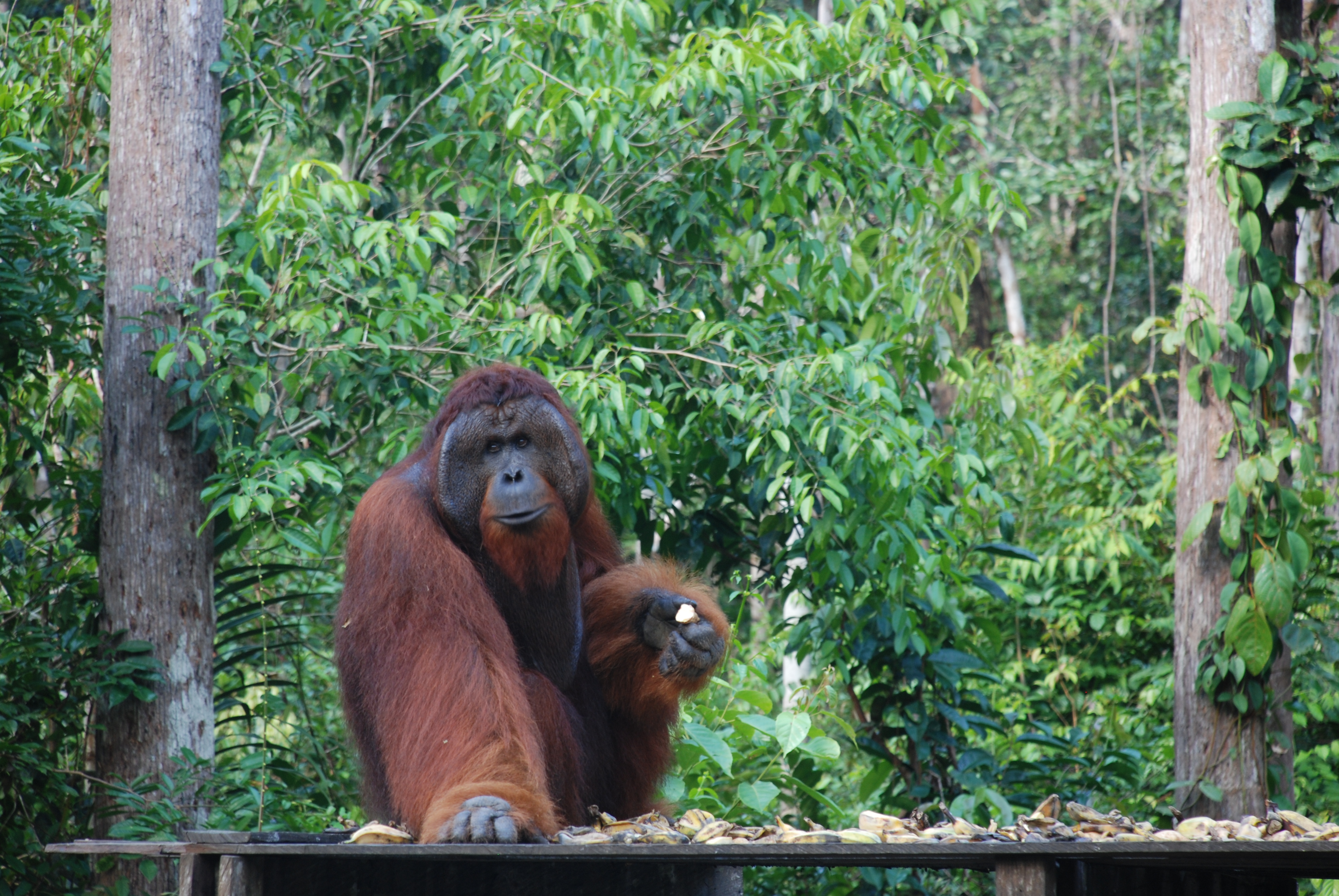Cada vez se acercaban más, venían de todas las direcciones tambaleándose a cámara lenta, mientras la jungla se estremecía a cada paso de aquellos enormes primates. A la continua y variopinta melodía selvática se unía la llamada que los guardabosques hacían a los orangutanes. Un sonido directo que se iba apagando a medida que la selva engullía su canto y que indicaba que era la hora de la merienda.