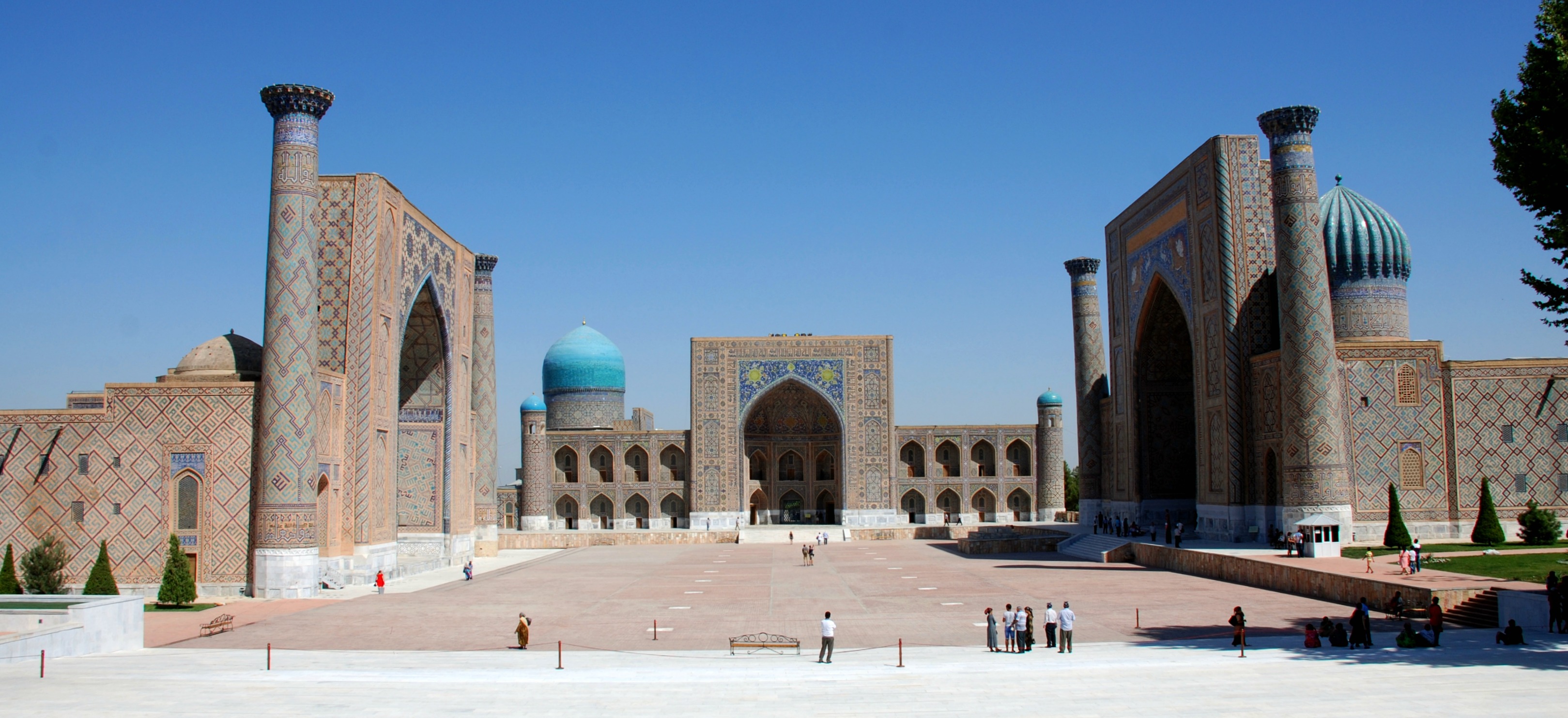 La primera e imprescindible parada en esta ciudad es la plaza del Registán, el lugar más emblemático de Asia Central. Este complejo da cobijo a tres majestuosas madrasas. La más importante es la de Ulugbek, donde se enseñaba matemáticas, teología, astronomía y filosofía a más de 100 alumnos; la Sher-Dor, decorada con dos leones (símbolo de la ciudad) y dos soles; y la Madrasa Tilya-Kari, cuyo interior está decorado con pan de oro. Esta plaza fue escenario de numerosas contiendas, proclamaciones reales e incluso ejecuciones públicas, sin duda alguna pisar este lugar te transporta a aquella Samarkanda medieval plagada de mercaderes y azotada por las arenas del desierto.