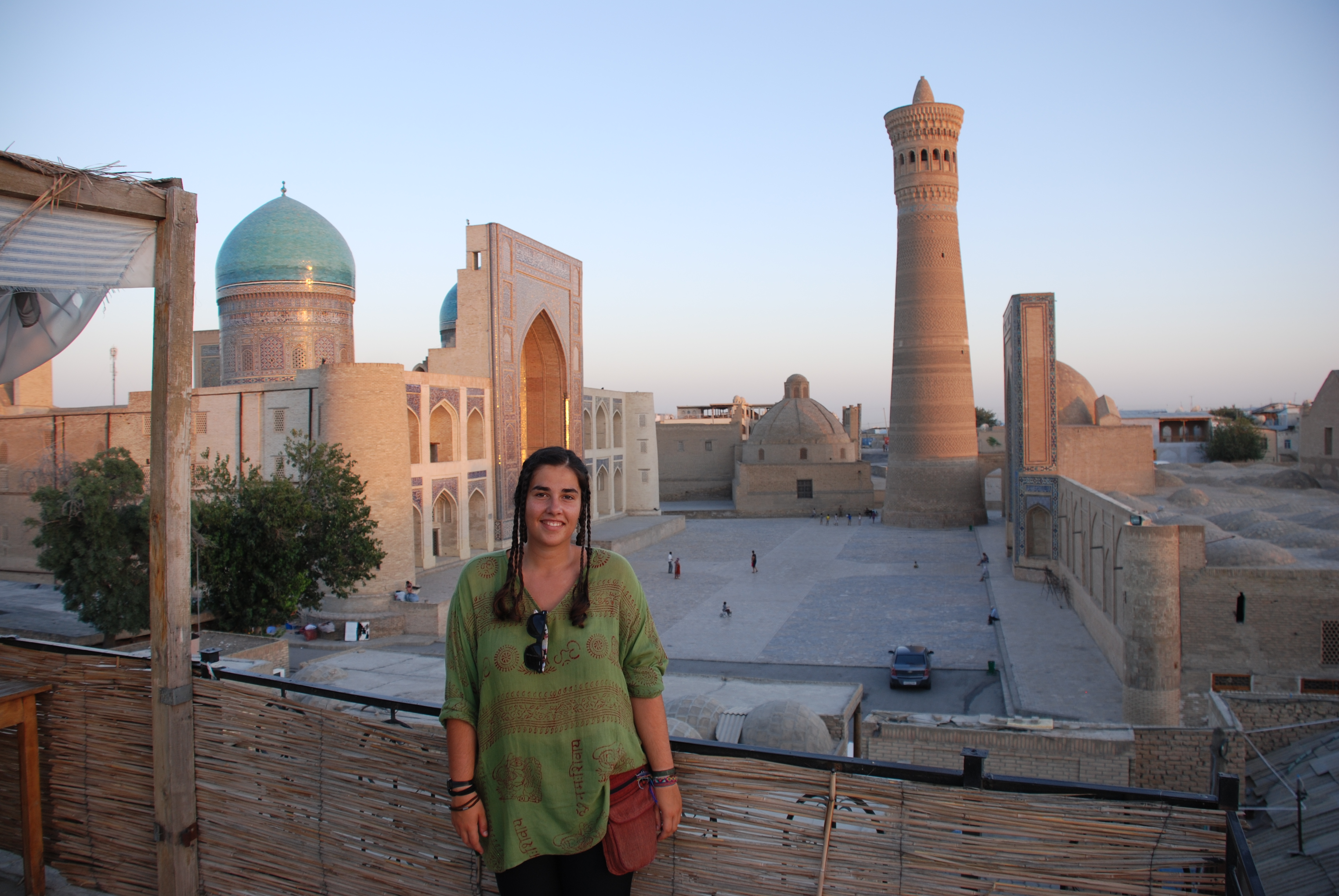 Bukhara es una ciudad acogedora, de gente sencilla y amable, volcada con el viajero después de miles de años de comercio e intercambio cultural y orgullosa de su pasado histórico y grandioso. Pero antes de marchar, uno no puede abandonar Bukhara sin admirar las vistas más bellas de toda la ciudad. Al lado del complejo Poi Kalon, donde comienza el laberinto de calles se alza un restaurante típico con una terraza espectacular. Las vistas desde este lugar son hipnóticas, aunque la leve brisa y la sombra también son de gran ayuda.