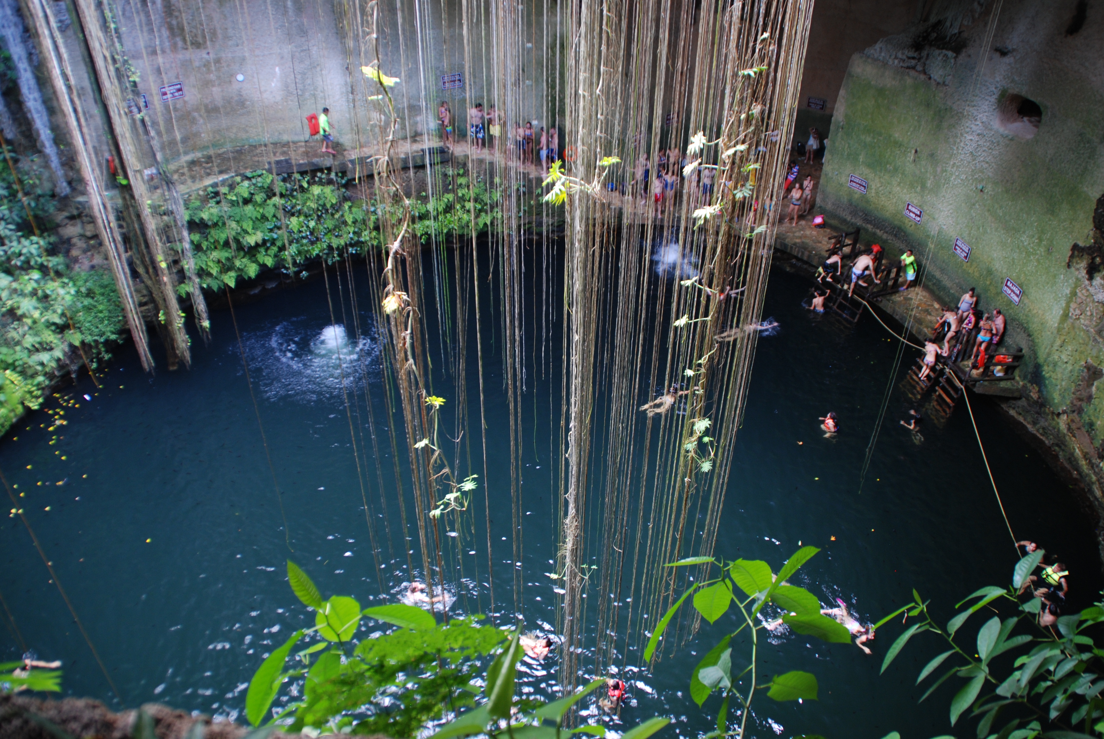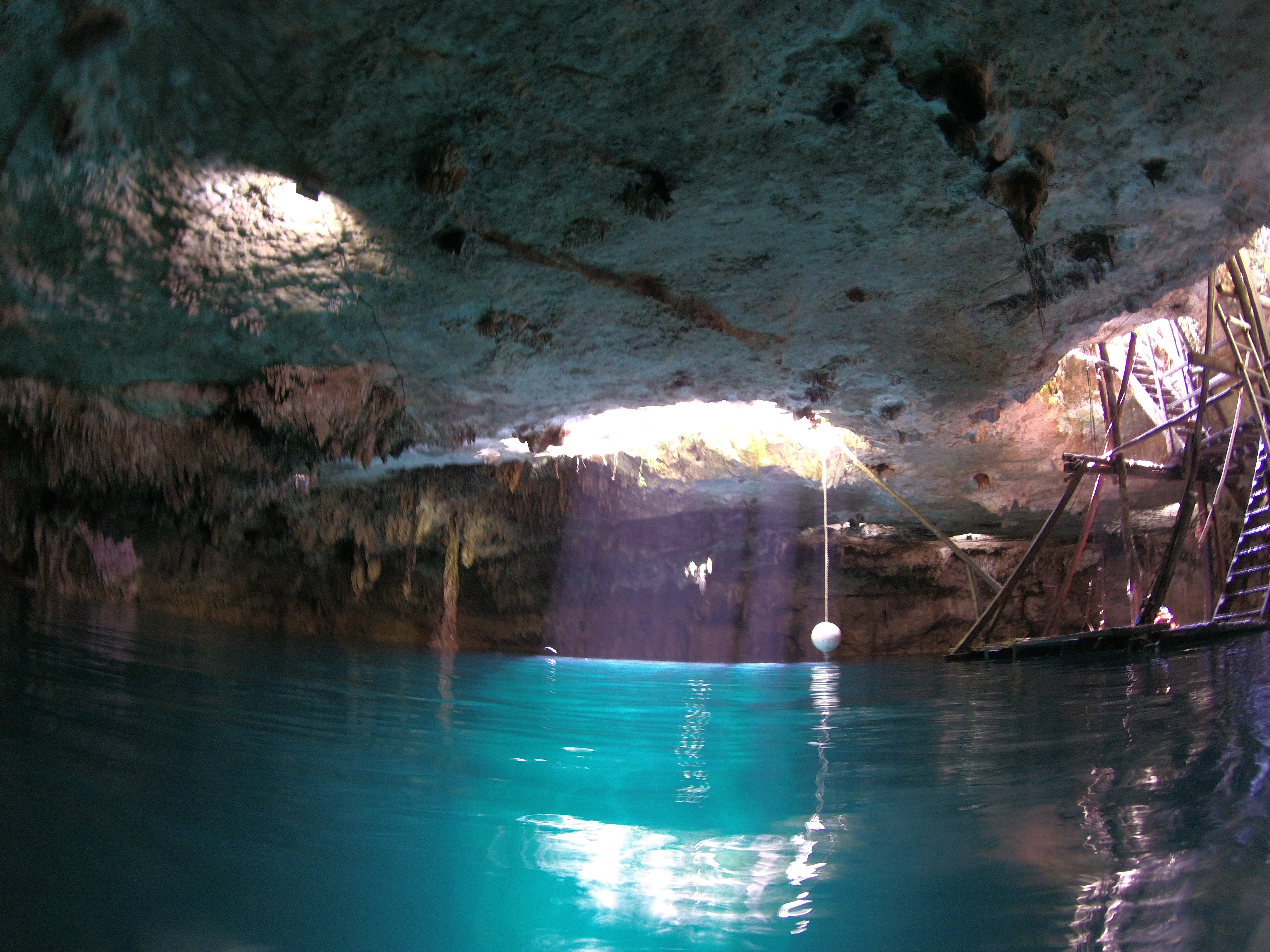 Día 17 Cenote Kin ha (entrada 200 pesos por persona). Es un cenote cubierto precioso, se encuentra dentro de una cueva llena de estalactitas y murciélagos. Cuenta con tirolinas para lanzarte al agua y saltos de 4 y 5 metros a través de los agujeros del techo. También tiene una escalera y una plataforma de madera y tablas de paddle surf y una boya que cuelga del techo. Para llegar simplemente hay que coger el desvío hacia la Ruta de los Cenotes que sale desde Puerto Morelos y seguir los carteles. En un tramo se inicia una carretera de tierra con baches y agujeros pero vale la pena, ya que al no ser tan accesible apenas hay turistas y puedes disfrutar el cenote para ti solo- Puerto Morelos (aquí hay zona de snorkel, aunque no es gran cosa y también puedes alquilar una palapa (hamacas, mesa, sillas y sombrilla de hojas de palmera) para pasar el día por 250 pesos).