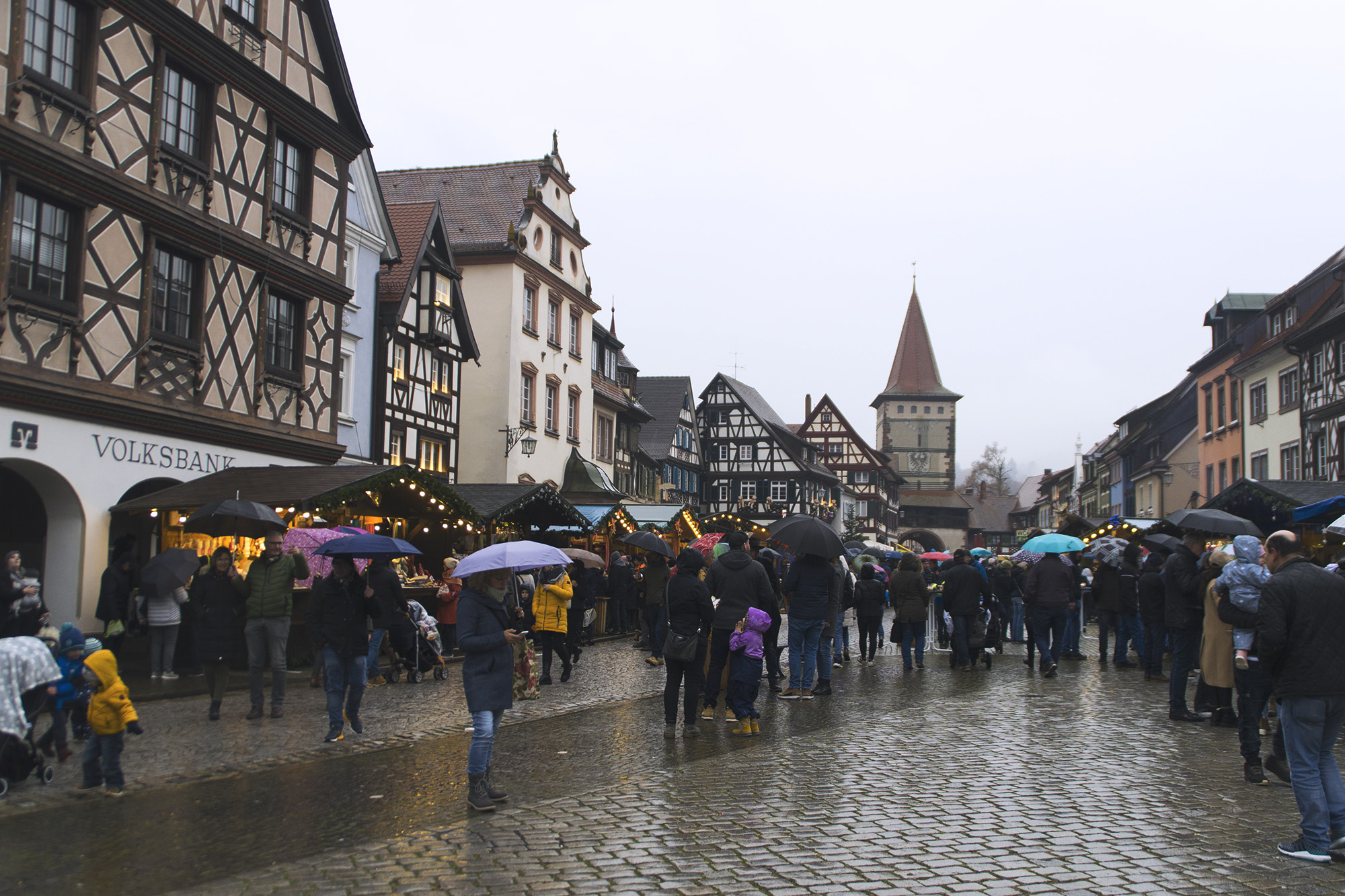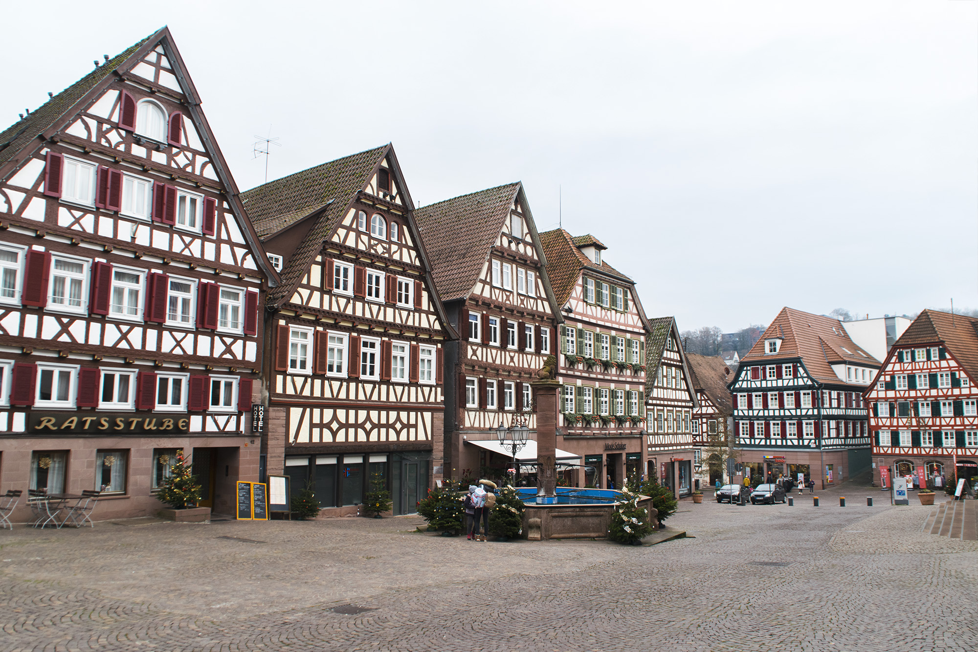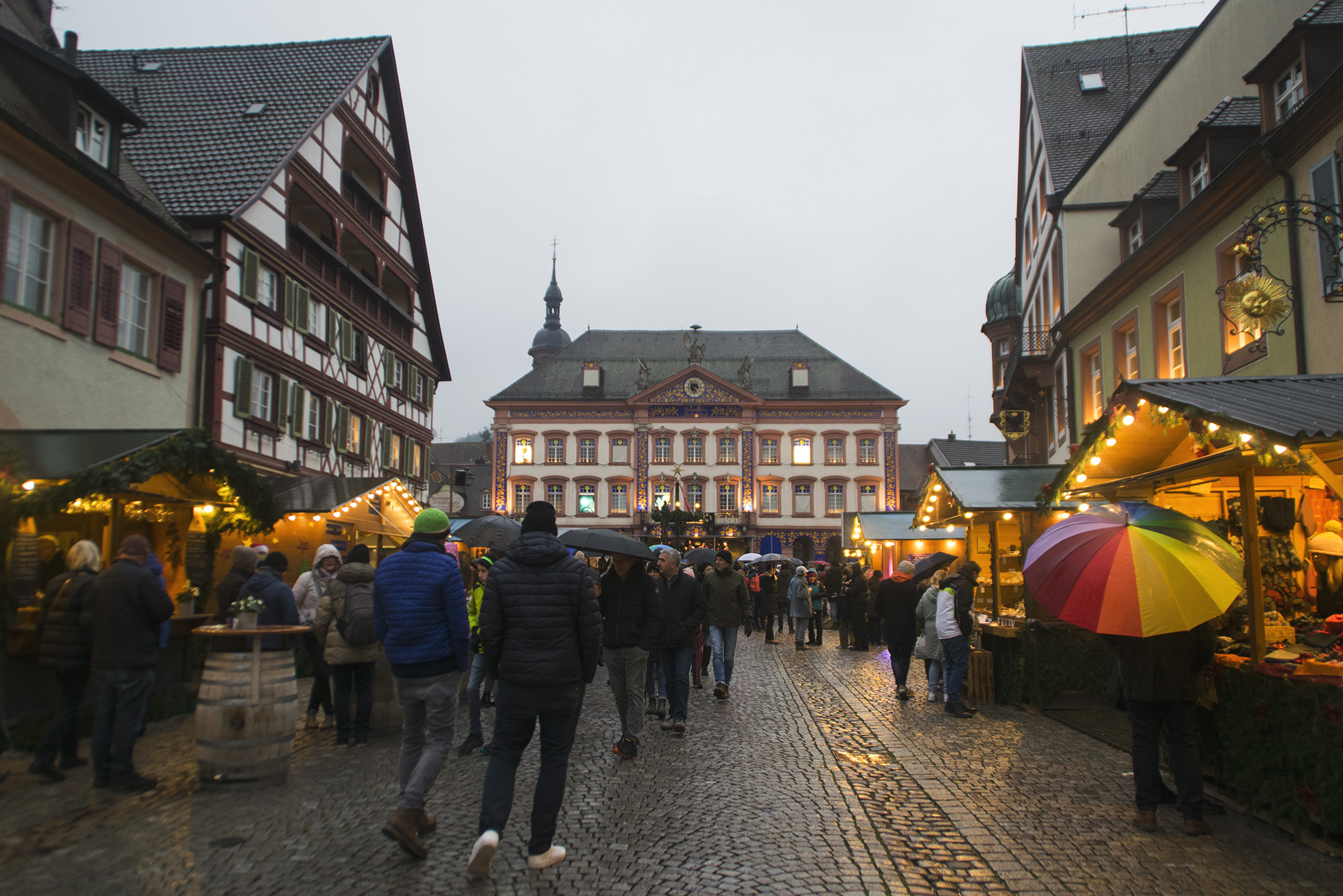 Se trata de una ciudad preciosa, con sus características casitas de los pueblos de la Selva Negra: entramado de madera de colores, contraventanas de estilo medieval y flores colgando de las ventanas. Las casas bailan, fachada con fachada, como si se dieran la mano, en torno a la plaza principal donde se encuentra el ayuntamiento.