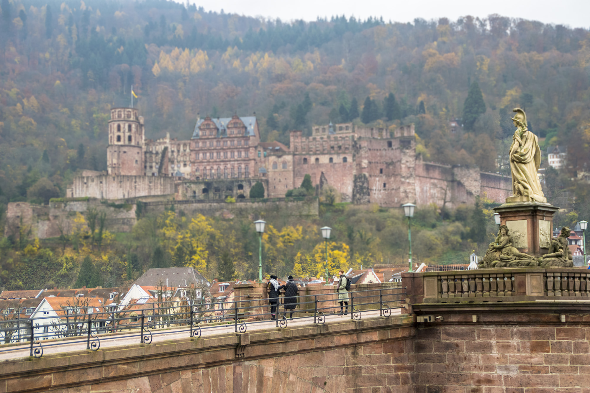 Heidelberg es una ciudad animada, romántica y, sobre todo, respira ese ambiente universitario tan característico de las ciudades europeas. Sus innumerables plazas son escenario de mercadillos navideños donde comprar adornos, comida callejera y el clásico Glühwein, vino caliente especiado, que ayuda a combatir el frío.