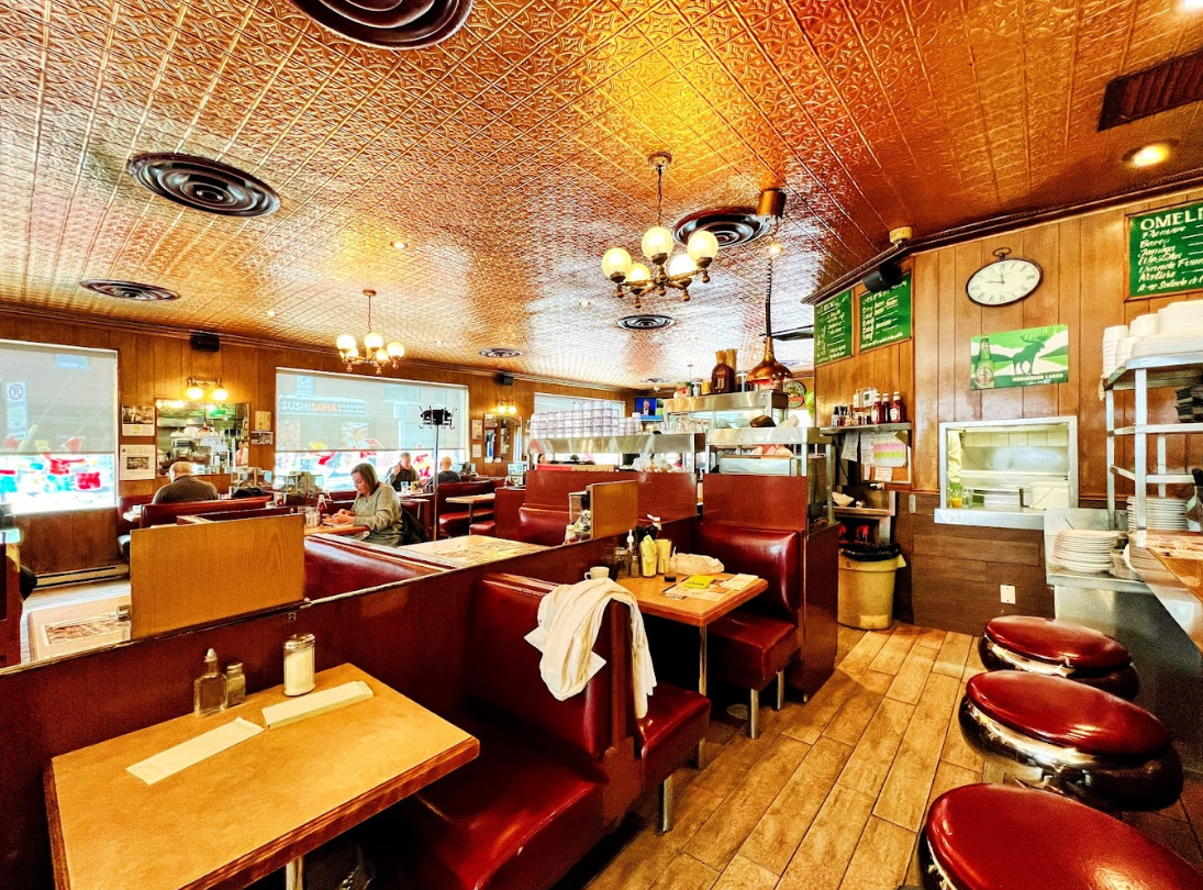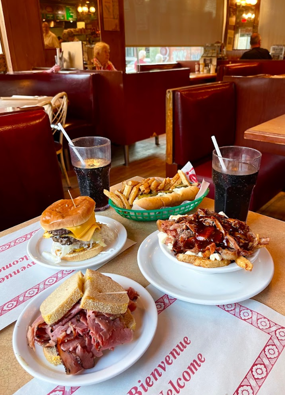 Este restaurante con ambiente de dinner americano lleva sirviendo sándwiches de carne ahumada y poutines durante décadas. Al entrar al local te transportas a otras época por la estética del local y las antiguas máquinas con canciones para pinchar música. La comida es genial (aquí probamos nuestra primera poutine tradicional de Canadá y fue todo un acierto) y está súper bien de precio.