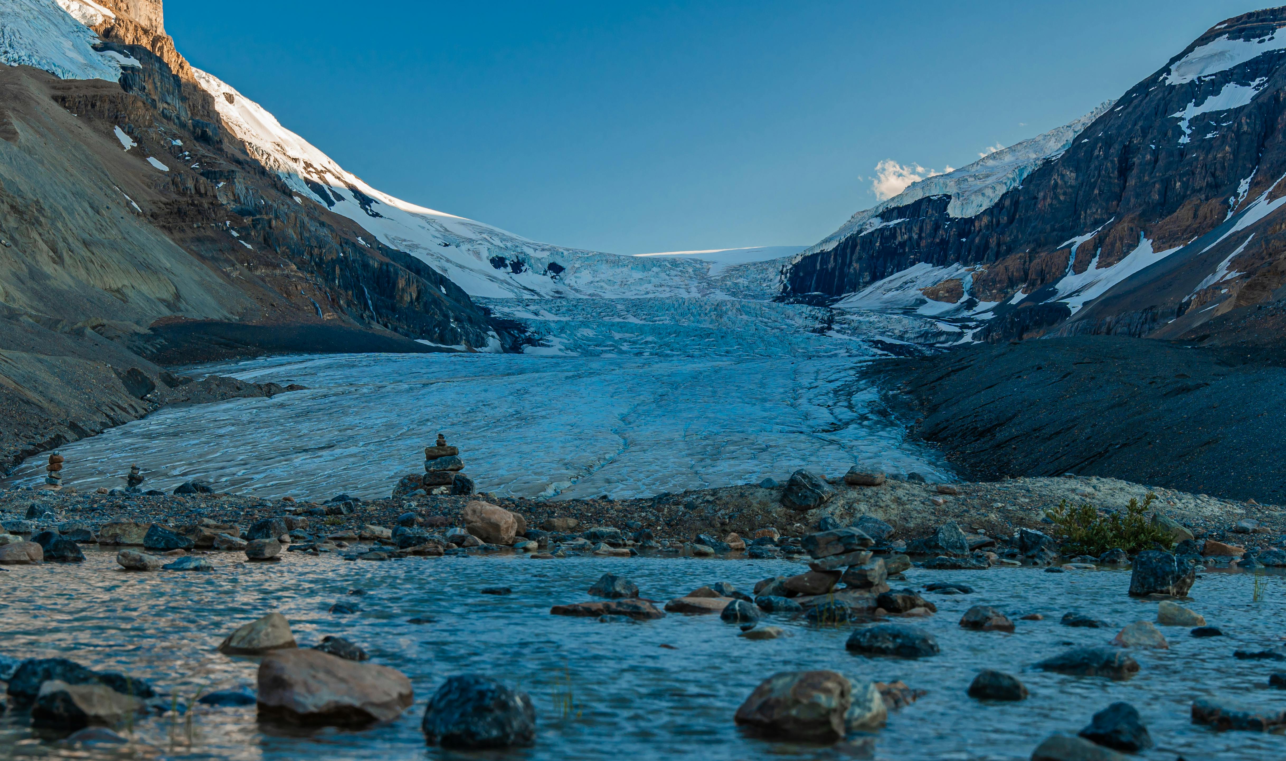 Si te hace ilusión ver un magnífico glaciar de cerca entonces tienes que hacer una parada en el Athabasca Glacier. Puedes dejar el coche en un parking y llegar caminando en unos 20 minutos. Ahora, da un poco de pena ver lo mucho que ha retrocedido el glaciar, un 60% de su tamaño aprox.