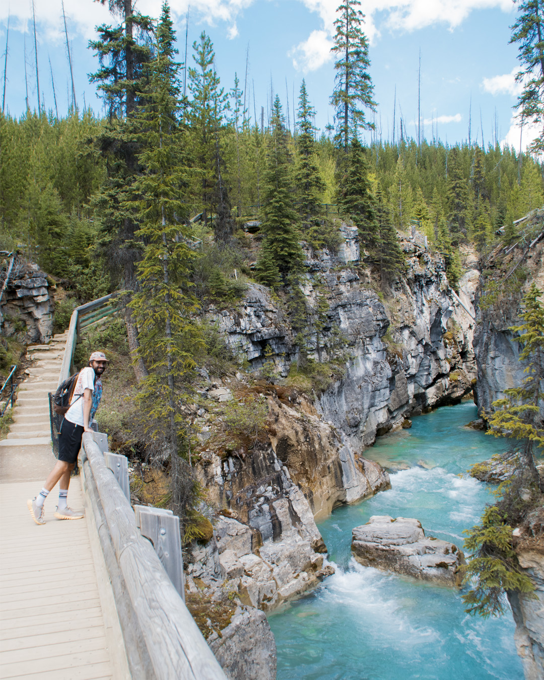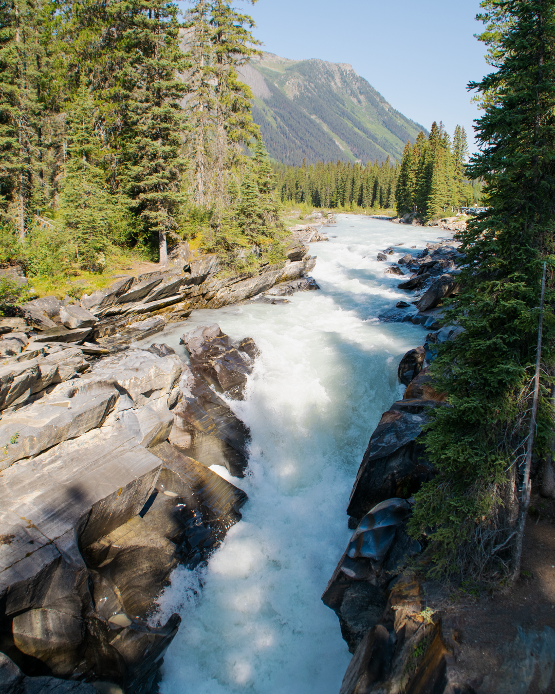 Muy cerca, no te puedes perder el Mistaya Canyon, un sendero de unos 30 minutos que cruza el estrecho cañón de Mistaya con una fuerza de agua poderosa. Cuanto más temprano vayas menos gente encontrarás.