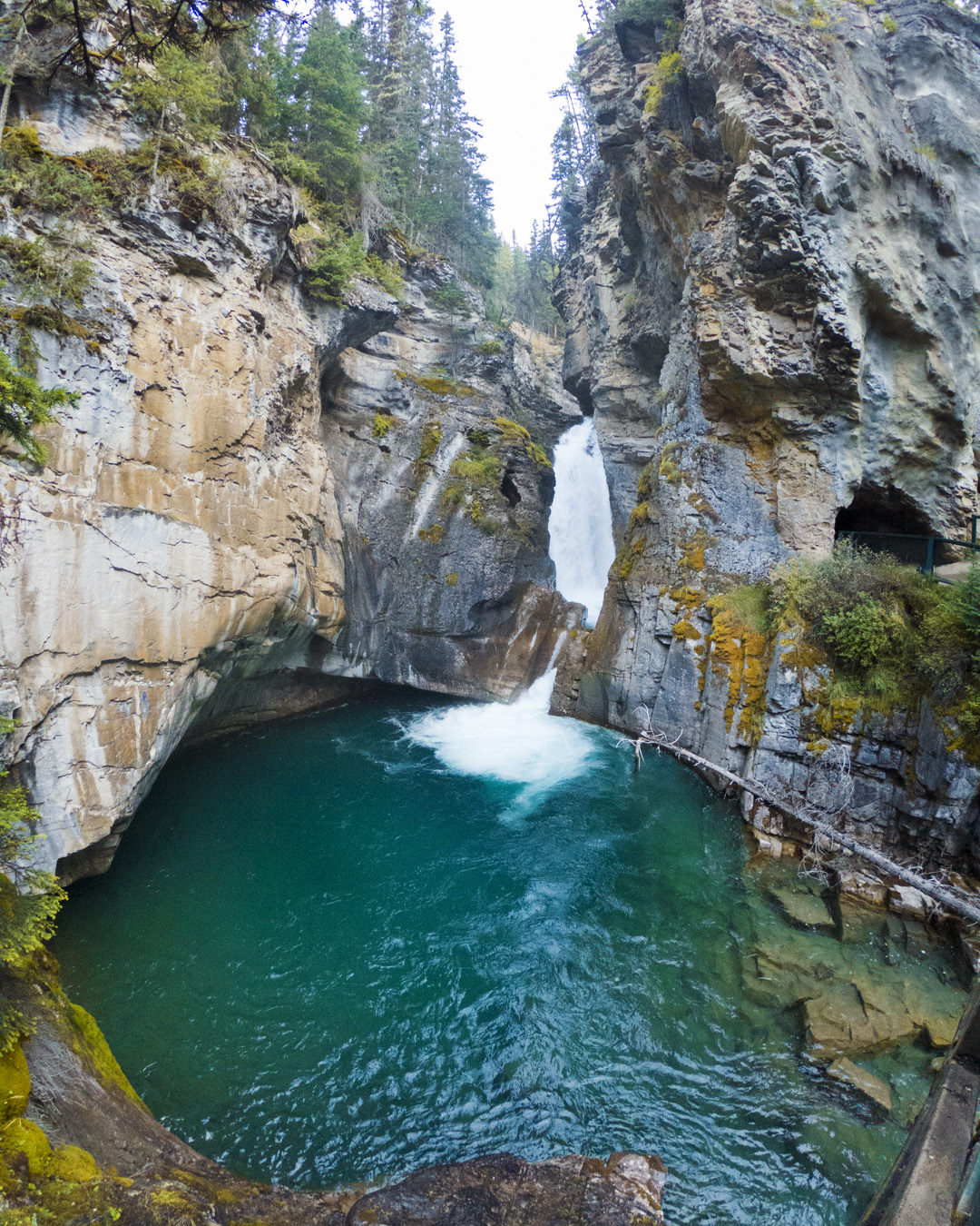Y no podríamos irnos del Parque Nacional de Banff sin hacer una parada en el Johnston Canyon e Ink Pots, un paseo muy agradable por el bosque, junto al río y con pasarelas que facilitan el recorrido. Repleto de saltos de agua, cascadas y formaciones rocosas imposibles. Súper recomendable.