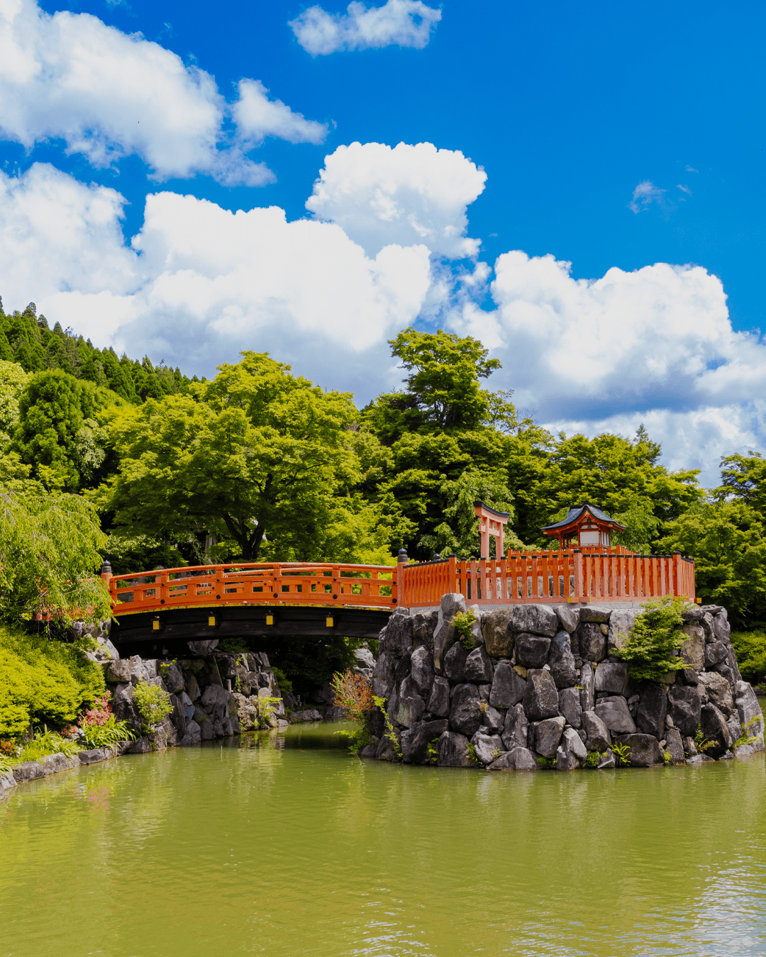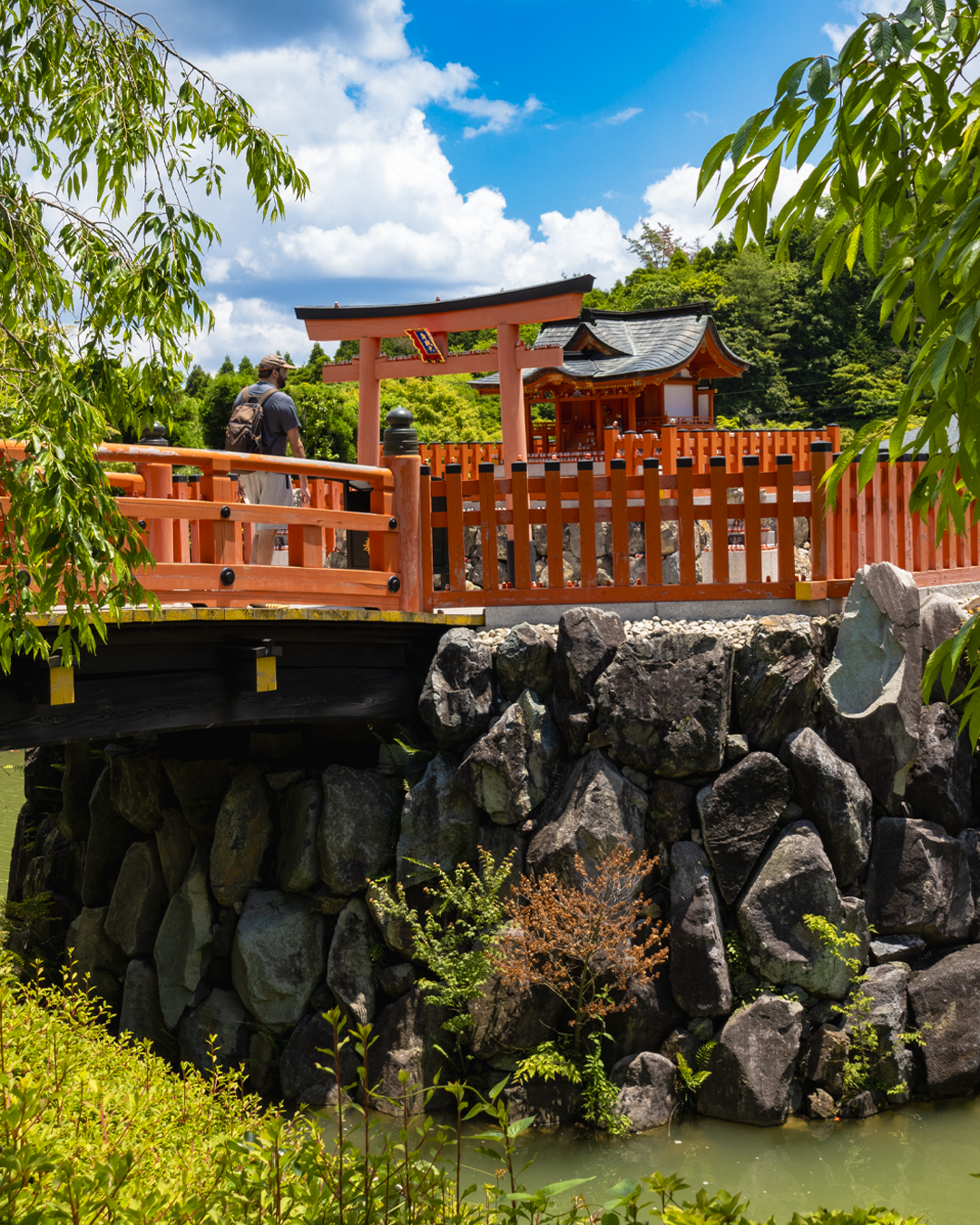 El último salón del camino, literalmente sobre el estanque, es el Benten-do y está dedicado a la diosa de las artes y la música, por lo que, por supuesto, vienen muchos artistas para pedir una pequeña ayuda con su talento. El lugar es incomparable. Rodeado por agua y conectado únicamente por un puente de color rojo en forma de arco. Muy cerca, una cascada crea música ambiente y me guía hasta la salida. ¿Ha sido un sueño?