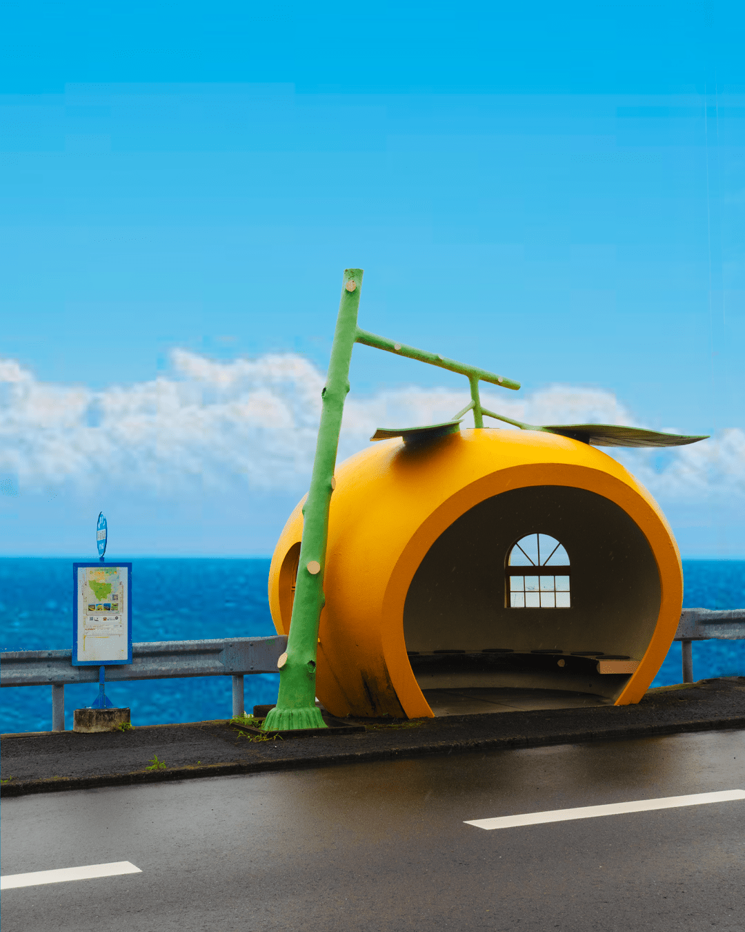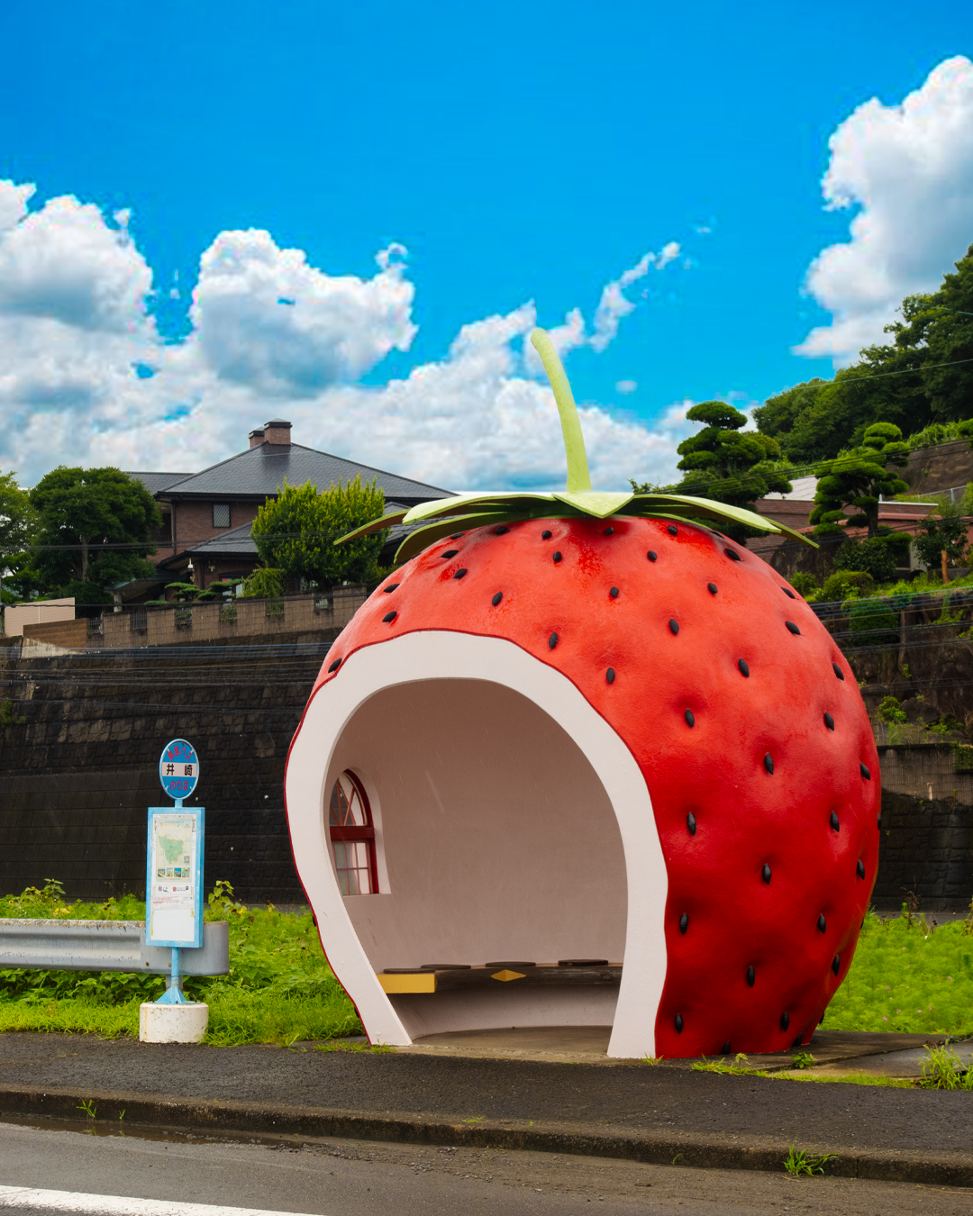 En la pequeña ciudad de Konagai hay 16 paradas de autobús que recorren la autopista 207. Las paradas de autobús no son las típicas, ¡sino que tienen forma de fruta!