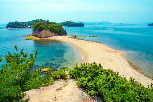 • Shodoshima, ¿sabías que en esta isla fue el primer lugar de todo Japón donde crecieron con éxito los olivos? Y no solo eso, también es uno de los rincones productores más tradicionales de salsa de soja. Así que puedes visitar tanto las plantaciones de olivos, en el Olive Park, como una fábrica de salsa de soja con más de 400 años de historia. En el área de Hishio no Sato todavía quedan alrededor de 20 fábricas de las 400 que llegó a haber. En cuanto a paisajes no puedes perderte el Angel Road, una bonita lengua de arena que conecta tres islotes, y la garganta Kankakei con las mejores vistas de la isla. Puedes subir y bajar en funicular por 1890 yenes (12€). También, entre las montañas de la isla se encuentra el templo budista Daikannon, conocido por la Gran Kannon, una estatua de la diosa de 50 metros de altura.